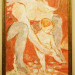 “Alluring Burden – art is assumed as an individual option (The transition between worlds) as a sign of destiny (Ana), as meaning of fulfilment, after having completed the weary stages of initiation (….) and completeness (The Miracle Vault). Seen from the front, monumental, in strong contours, carefully and determined drawn, the characters of Dalia Bialkovski are represented in moments of concentration, strive and persistence, abandonment, love, happiness; in the first situation shown, ladies in belle époque clothes (…) – wide-brimmed tall hats and veils, long and wide dresses – seem plunged into their world, with enigmatic smile on the barely suggested face Introspection) or in the arms of the man carrying strongly, the wondrous burden; the strive and perseverance can be identified in the attitude of the Tamer or of the Ladies of Leisure; the abandonment is felt by partners in the middle of the Dance, when there is only rhythm, sounds and the joy of living; love belongs to the mother who contemplates her baby (Protection, First Step), and happiness – in the arms of her man (Tango)” – Doina Pauleanu PhD, art critic and manager of Constanta Art Museum.