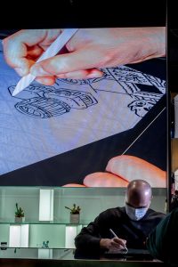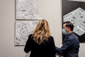 His style is specific for the underground aesthetics of Lowbrow Art and, surprisingly, at a time of boom in NFTs and crypto-art creation, the artist starts from a digital concept, which he then transposes to analogue, on canvas, which is somewhat of a reverse order. Does this trend announce the anticipated arrival of an artistic world totally different from the current one, as predicted by certain players in the art market?” (Ana Sultana Cipariu)