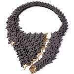 Maria Filipescu presents a world of contrasts: either pieces with minimalist design, with clean lines, or statement accessories with unique textures, intricate compositions and spectacular details. “There are experiments that combine divergent materials to highlight each other and enhance their plasticity. Every one of her pieces bears significance, it is the materialisation of an innermost vibration and she creates an intimate relationship with the bearer”. – Andra Ilias