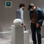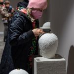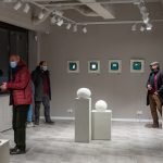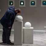 “Present in every work from Aniela Ovadiuc’s new series, light represents the element that filters and facilitates access to an ever changing stylistic universe, a translucent porcelain and glazed sandstone universe, where white predominates and existential tensions evoke both appearance and essence. The self-referential component of the exhibition selection or the story about the hidden self, lost or found in the meta-language of shapes, culminates in a self-portrait hidden away in a sphere. In fact, the sphere represents the key to the entirety of the plastic discourse in this unprecedented selection – the flattened sphere, the elongated sphere, the sphere containing other spheres within it – each telling another story, which we can voyeuristically decipher through a small visor. Relying on the ceramics installation, Aniela Ovadiuc’s artistic practice is rather in the avant-garde part of this ancient art of fire, underwriting an already established trend of emancipation of ceramics and its inclusion in the major arts.