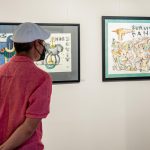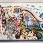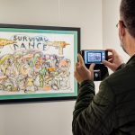 The association of characters, objects and text from Gabriel Caloian’s representations give the impression of collage, an eminently Dadaist technique, but his works are “hypnographies” (a term derived from “hypnosis” and “graphy”), made in a mixed technique in which he combines ink, marker and acrylic paint, making quicker reference to the state in which the artist devotes himself to the creative act. “Survival Dance” is claimed from one of the works in the exhibition selection, which is also a continuation of the “Morcovid” series, recently exhibited by Gabriel Caloian at the DANA gallery in Iasi. ” (Ana Sultana Cipariu, curator)