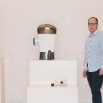 “What Nicolae Moldovan proposed us for the Senso Gallery exhibition reveals his relationship with the world: synthetic, sculptural, efficient. The artist’s perception of the forms in the immediate surrounding, generates lines, edges, volumes in his art. Its sophisticated metal-like hinges are net insertions in clearly defined volumes. The cut mesh-sizes are as many single-light windows as the columns and folds follow in steady rhythms. Any increase has its downward trend, aggrieved, or, as the case may be, suspended forms find a mysterious reflex in contorted embraces. The spectacular ball making Machine cancels out its uselessness. In his supple volumes, we hardly guess the model, step by step, in sandstone or clay. The technique that crosses time, ever since the Neolithic period, is hidden by the artist, because each artefact is polished with care and generosity before it is flooded with translucent glazes. The immaculate form, the long and long-sought concept is multiplied into small series of two or three works, without its basic form or idea being quenched.” – Madalina Mirea PhD, art critic, president of Radu Bogdan Foundation.