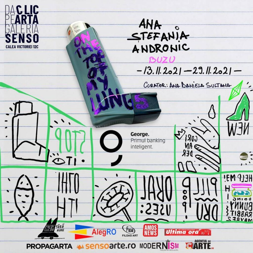 The opening of the exhibition On the Top of my Lungs by Buzu will take place on November 13th, at 18:30, and will be showcased within the Senso Gallery (Calea Victoriei 12C, ground floor), with the help of the AlegRo foundation and in collaboration with Galeria fără Nume (Unnamed Gallery). The exhibition is curated by Ana Daniela Sultana. This event is sponsored by the BCR program, George – smart banking.
