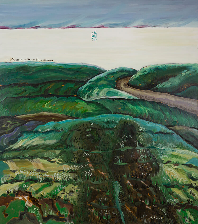 “All the world’s a stage, and all the men and women merely players, Ana Ruxandra Ilfoveanu tells us through the artworks exhibited in February-March 2017 at Senso Gallery. We can associate the Shakespearian quote, as incorporated into the work, to the open curtains – the genuine lateral backstage – that direct the view to the action in progress and allow the spectator to be co-opted, sometimes ensuring his or her complicity; the scene is never empty, but populated with harlequins, musicians, angels, other relaxed or preoccupied incarnations, shadows. (…)”.